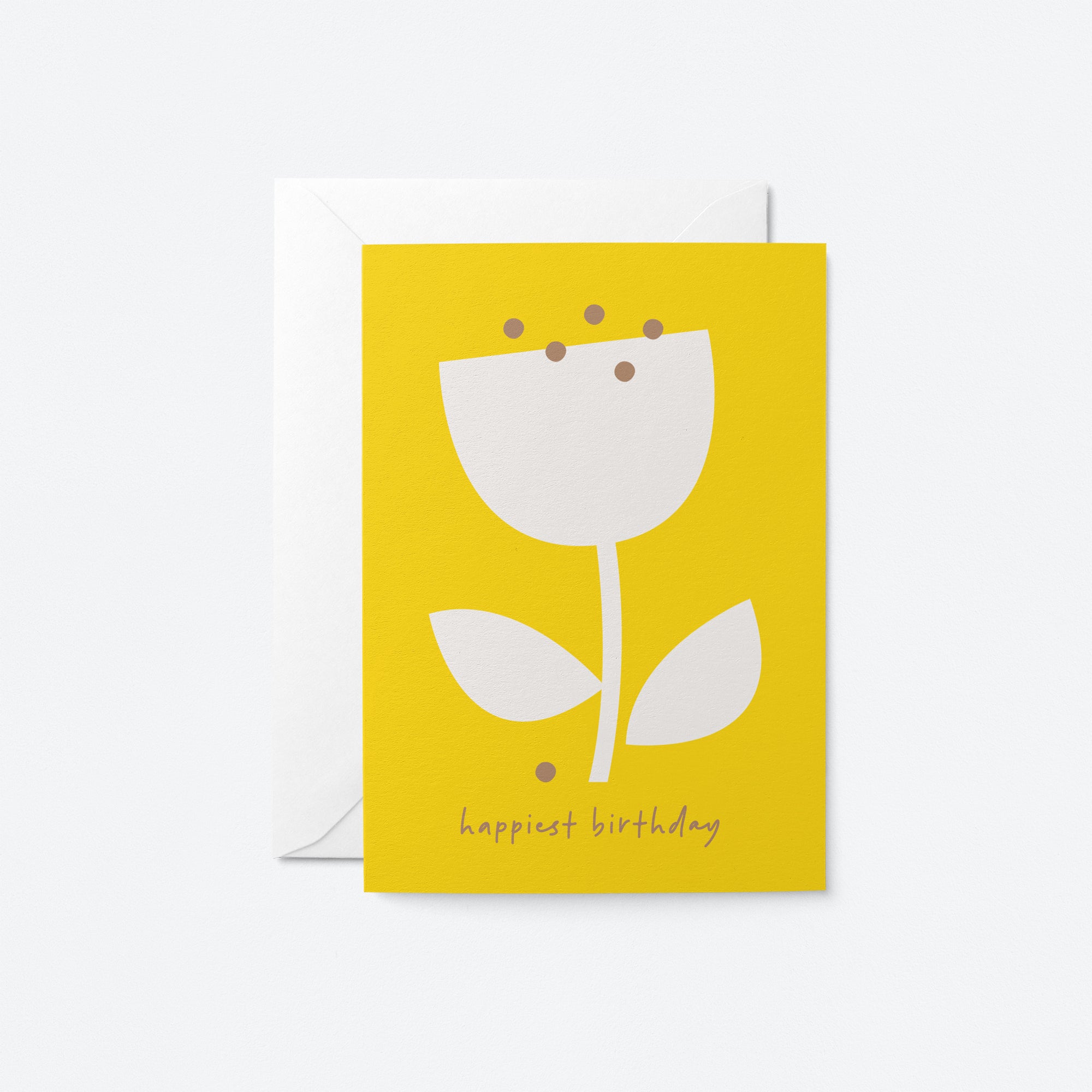This beautifully designed Happiest Birthday card is A6 in size. It comes with a matched envelope that is FSC-certified. It is sustainably printed on 300gsm FSC-certified paper, resulting in a lovely texture and rich colours.