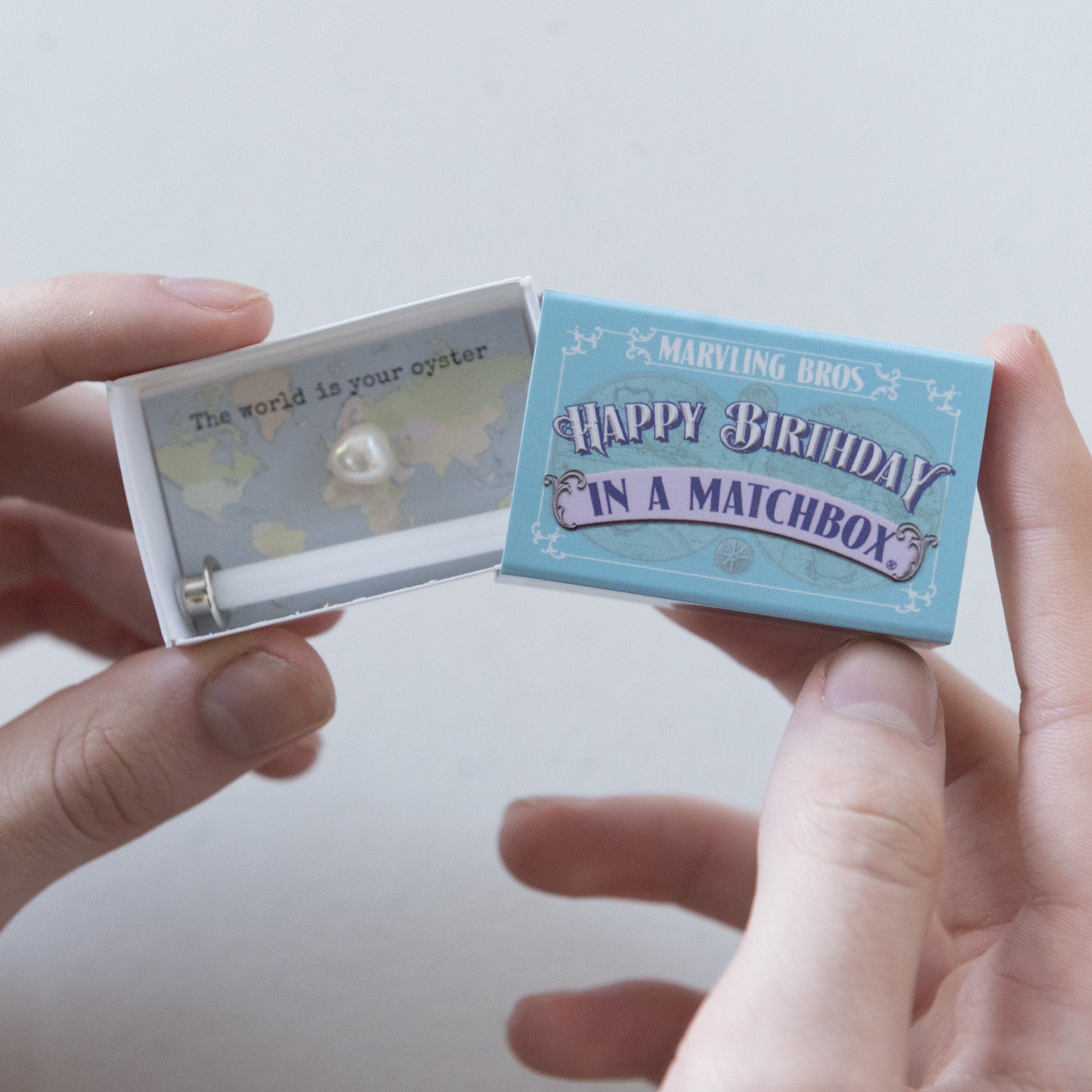 Open this stunning ’Happy Birthday’ matchbox to reveal a freshwater pearl and the inspirational message "The world is your oyster''. The genuine 7mm pearl is drilled with a 0.5mm hole so it can be used in a jewellery craft project, ready to be threaded onto a chain for a keepsake.