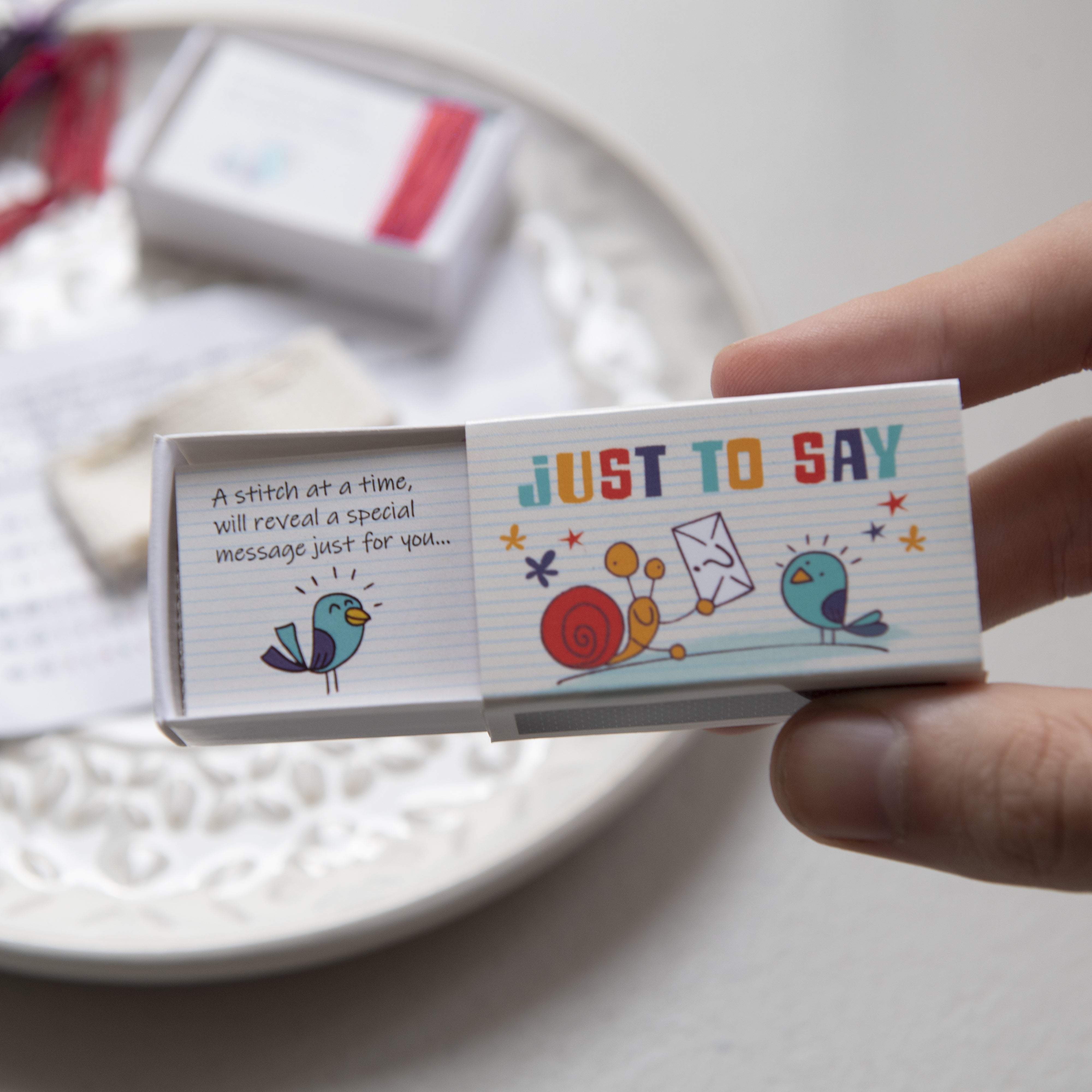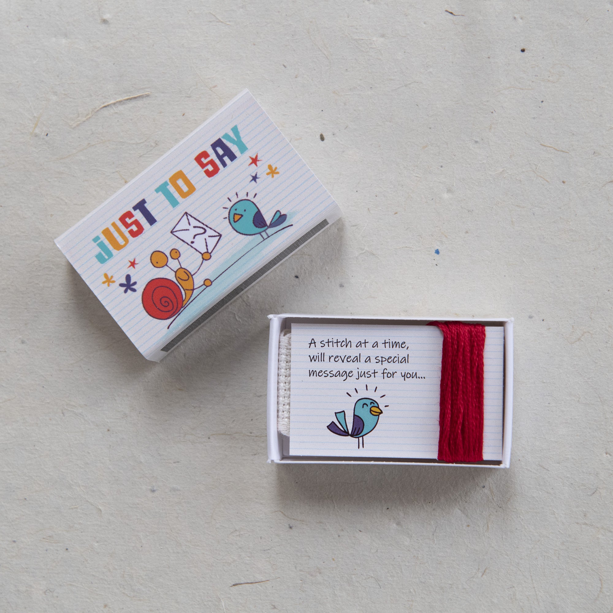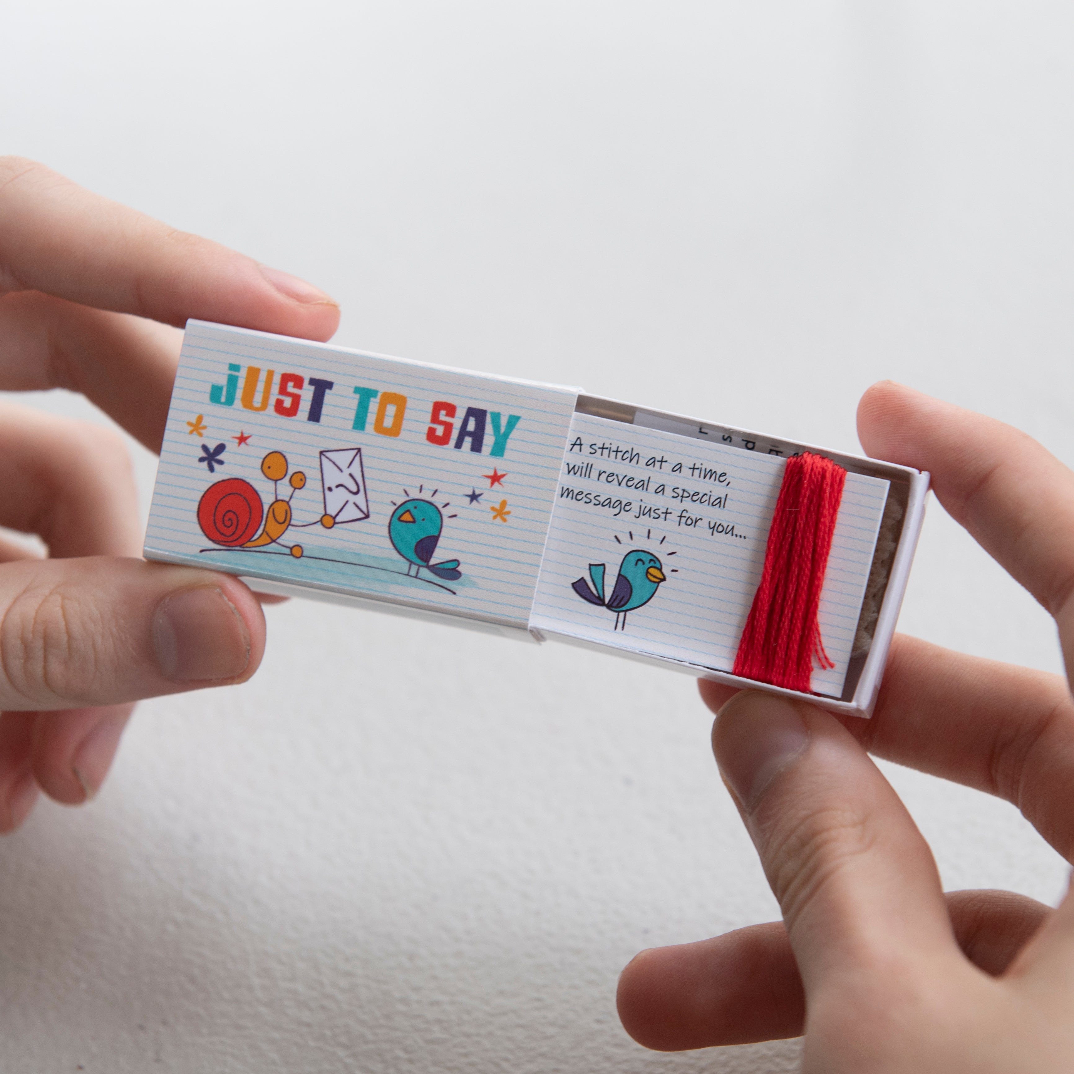 This ingenious little cross stitch kit has everything needed to decode and stitch the secret message 'CALL ME' beautifully presented in a matchbox.