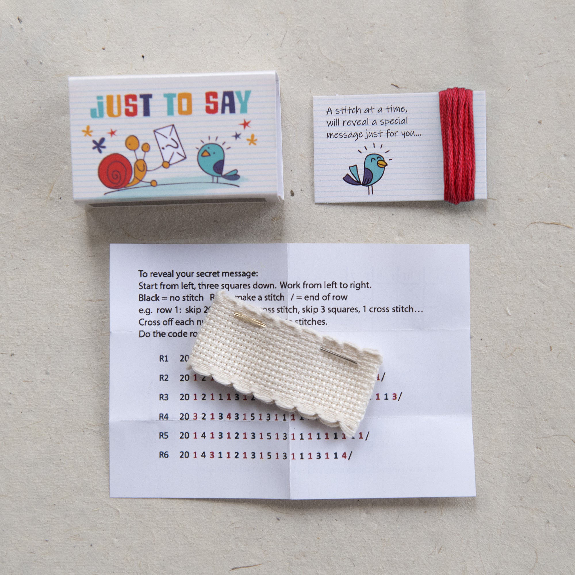 Send them a humourous secret message with this mini cross stitch coded kit.
