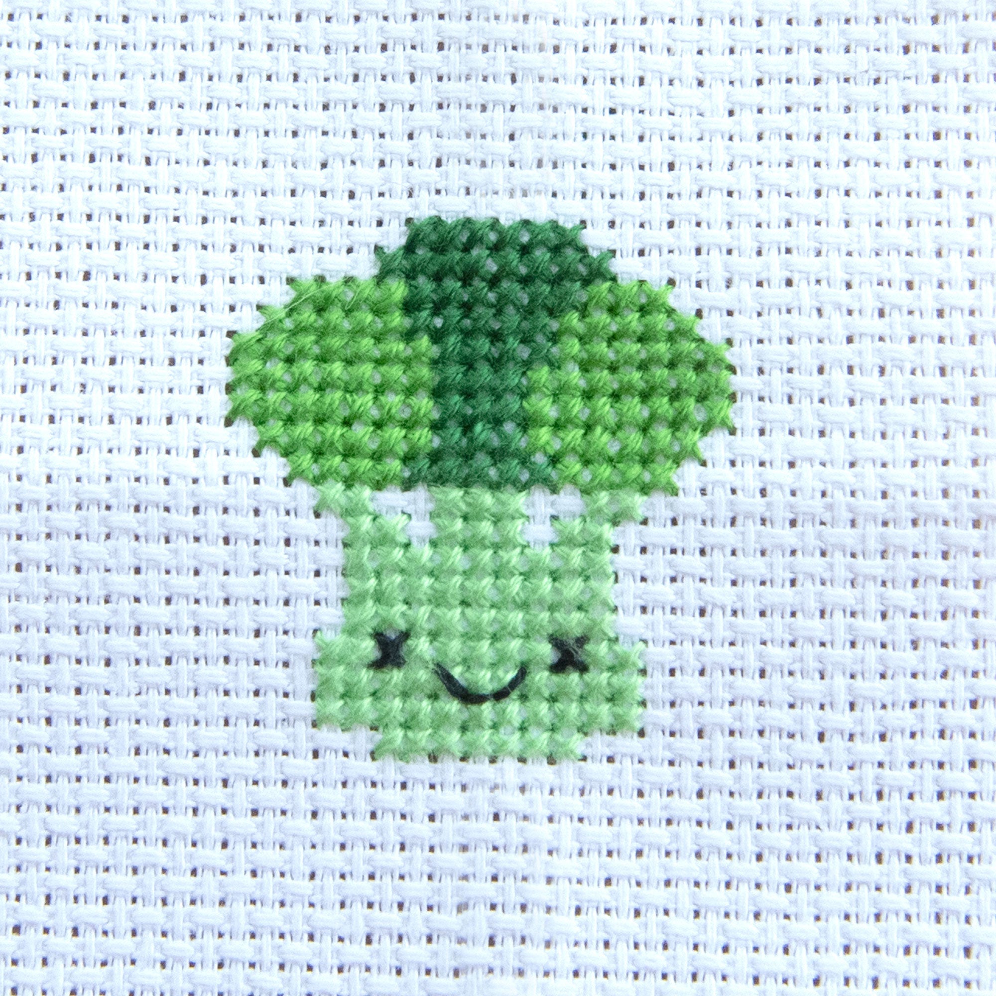 Mini Cross Stitch Kit With Kawaii Broccoli Design