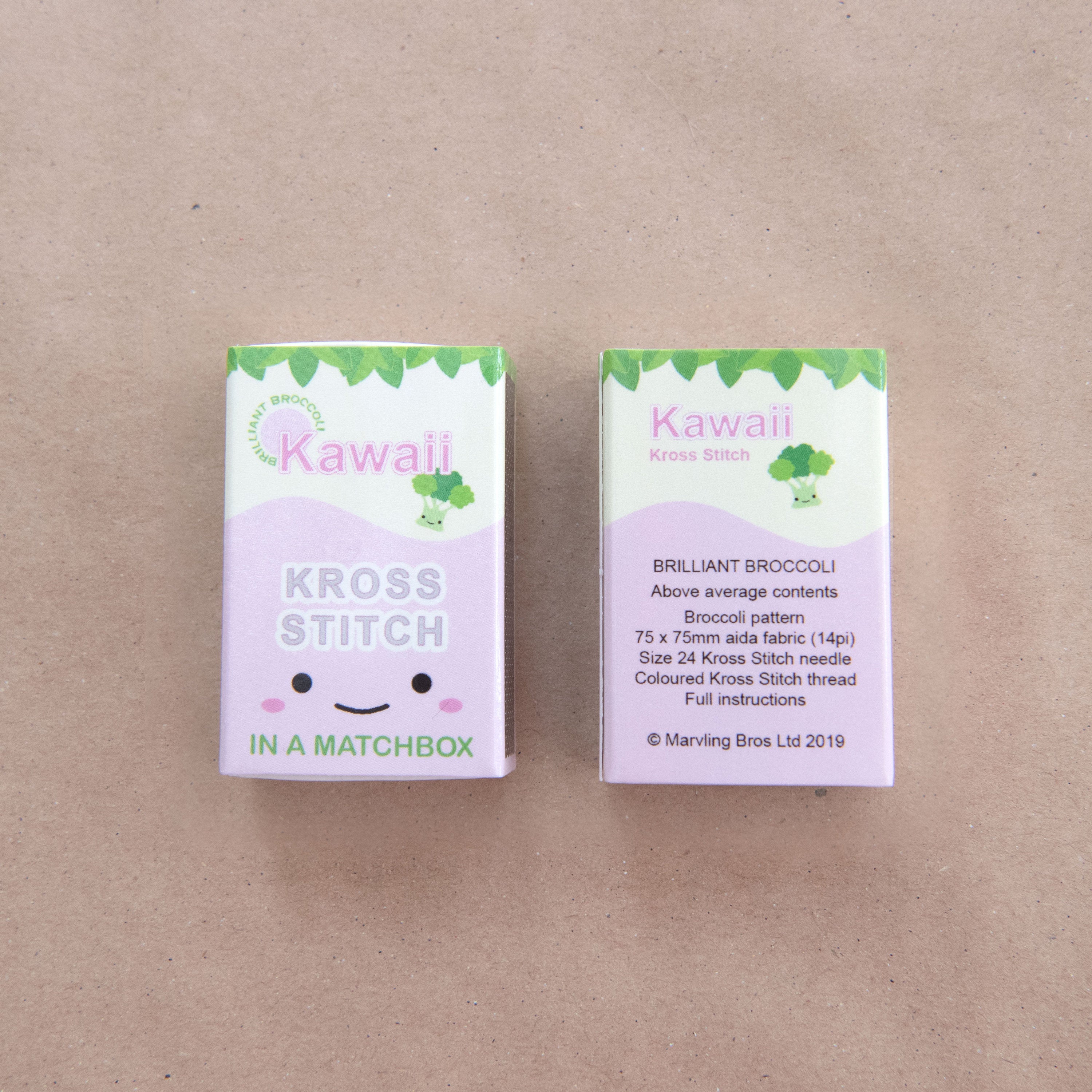 A super cute mini cross stitch kit with an easy to follow Kawaii style broccoli pattern, all packed in a Kawaii matchbox.