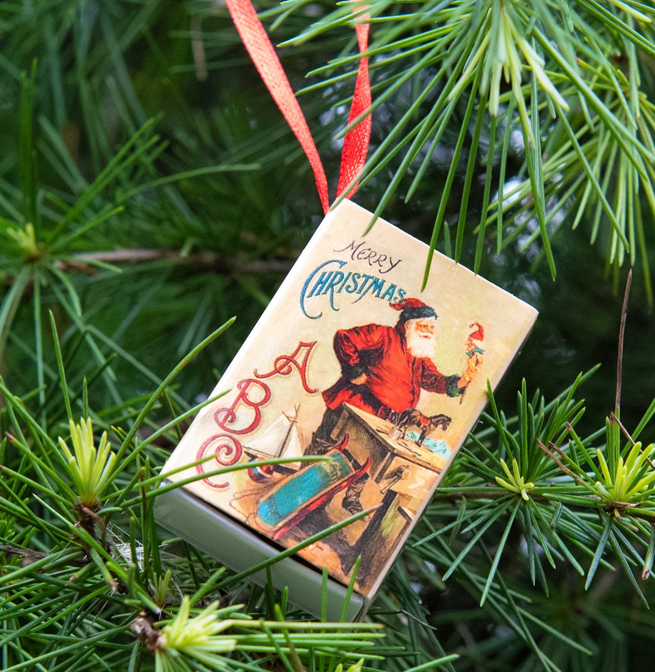 The delightful artwork from the original 1890's cover decorates the matchbox, which comes threaded with a satin ribbon ready to adorn the Christmas tree.