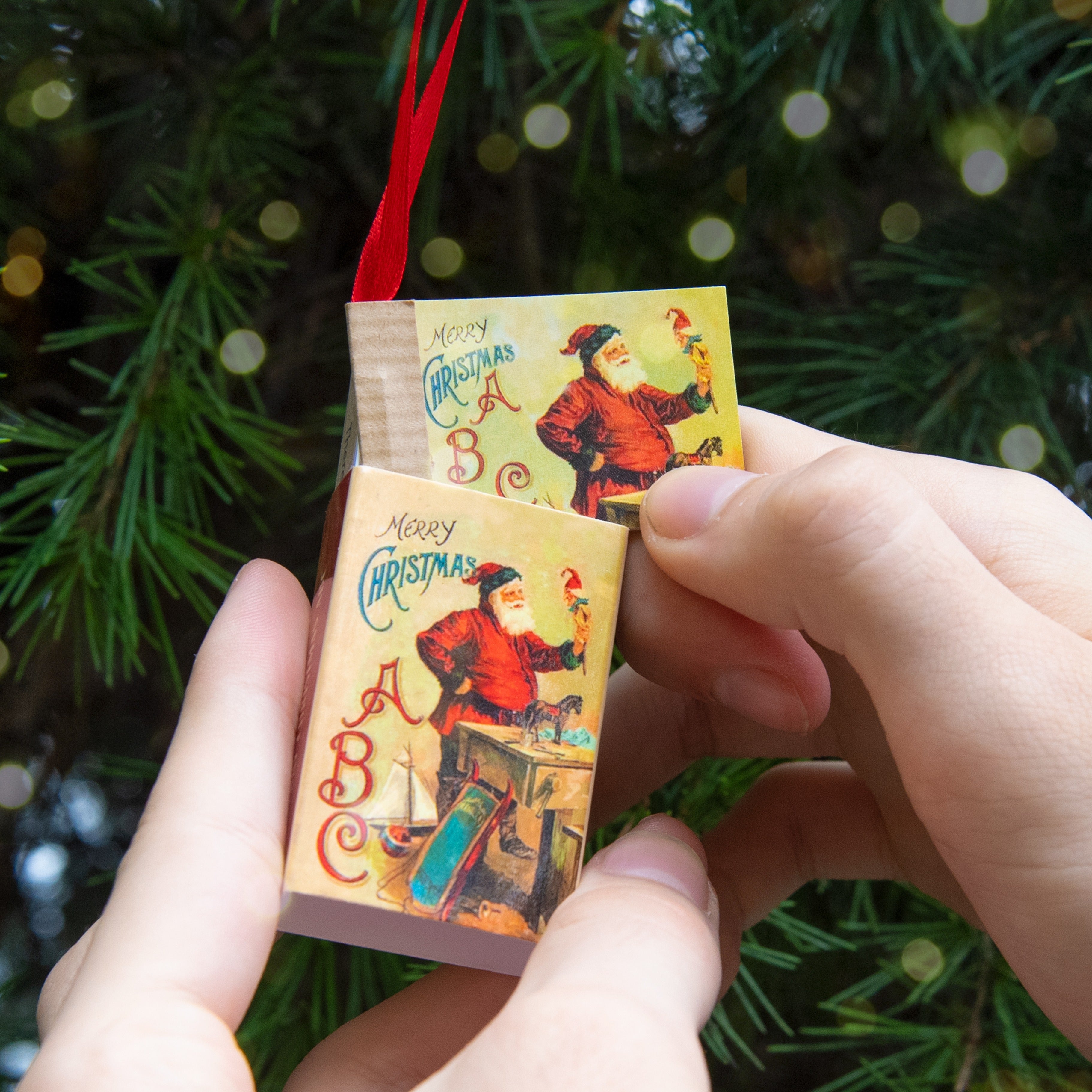 Bring back the excitement of storytime with this unique matchbox containing the full original text and charming images from the vintage poem 'Christmas ABC' recreated as a tiny paper book.
