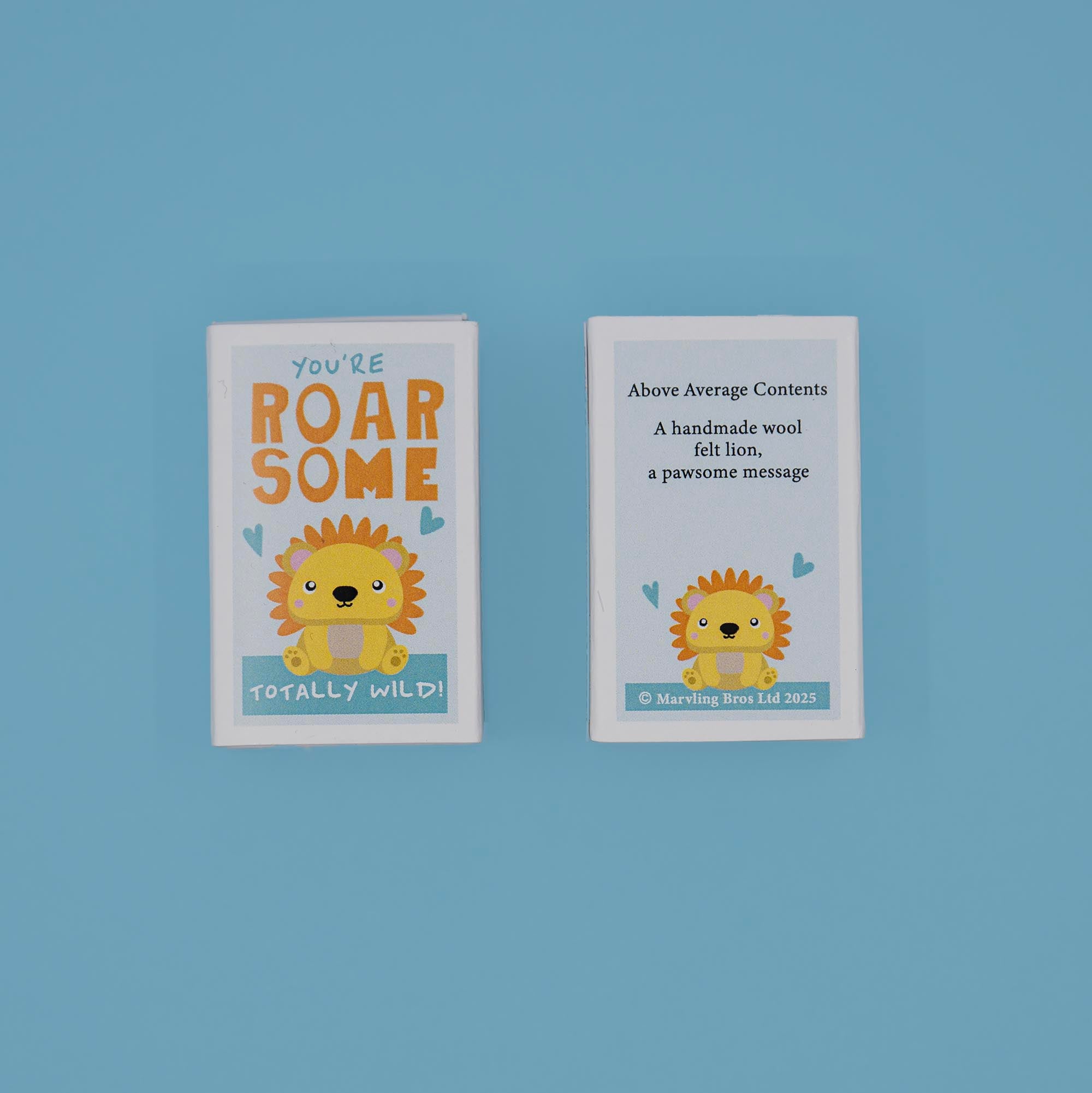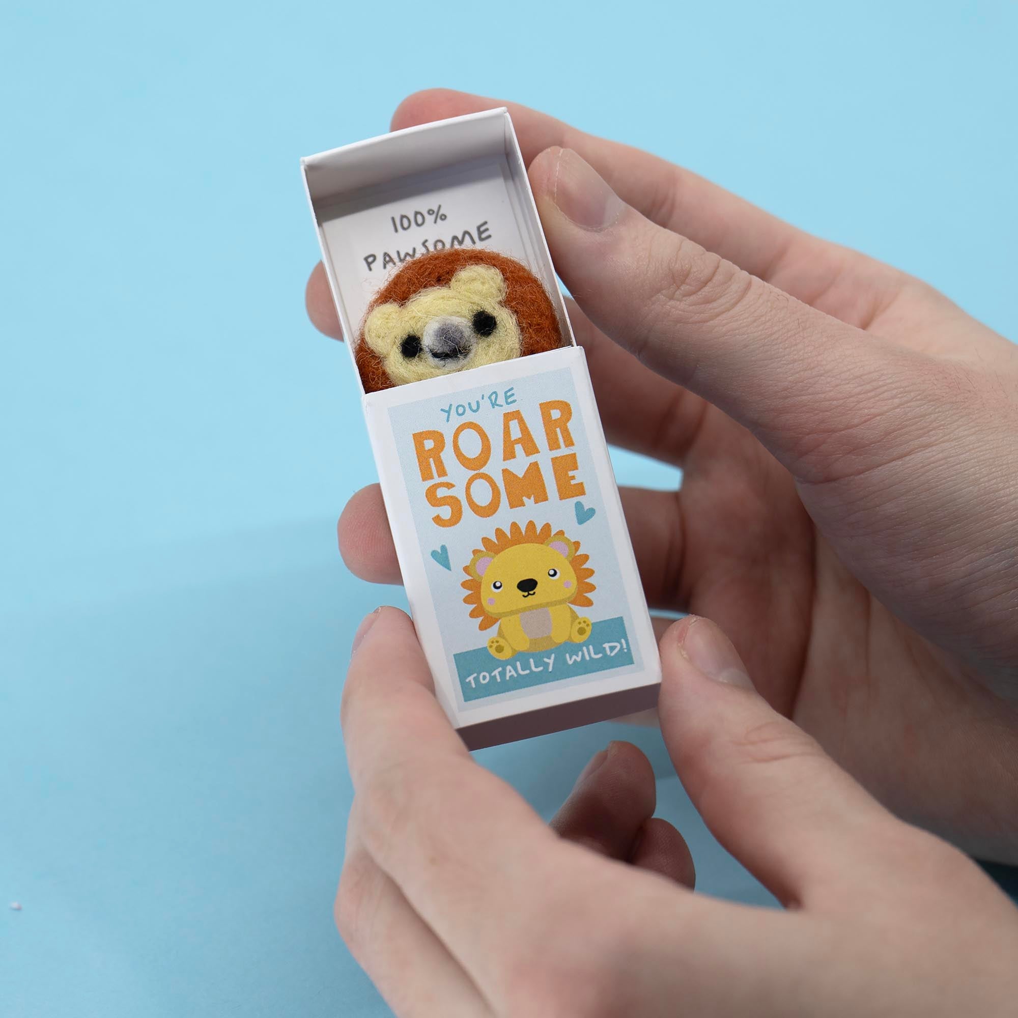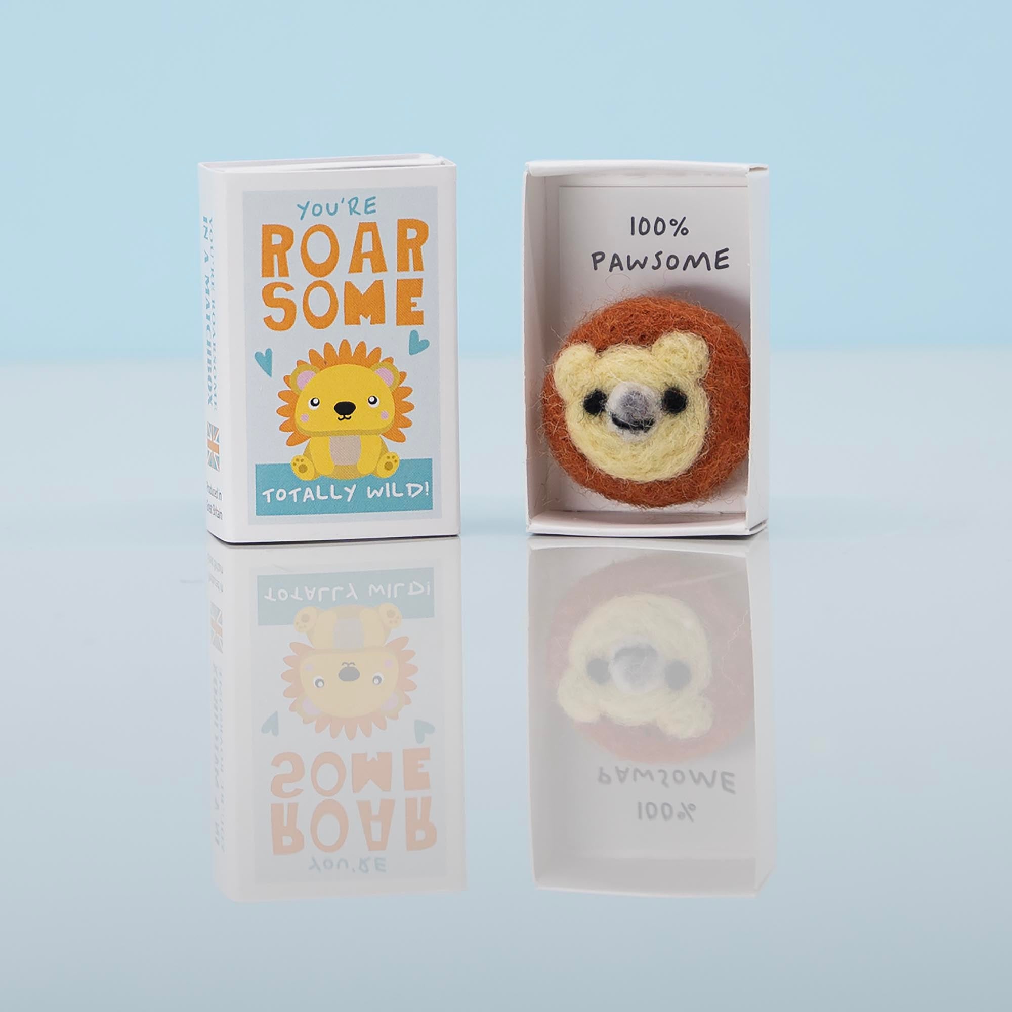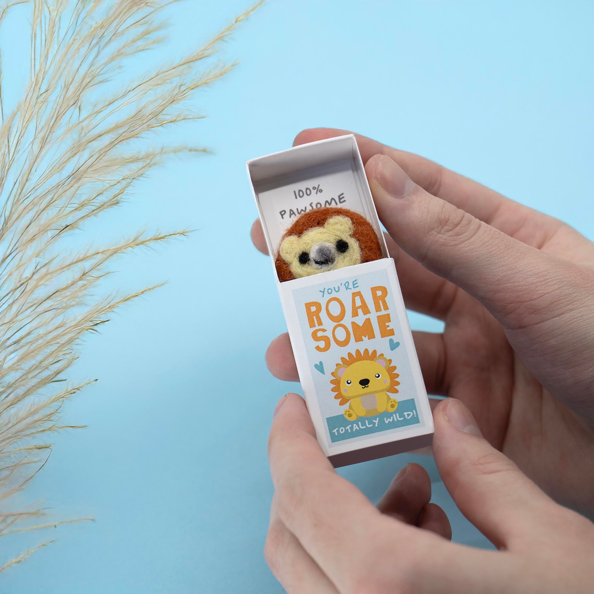Want to make someone feel truly lion-hearted? Our handmade wool felt lion in a matchbox is the perfect way to do just that. This thoughtful little gift is sure to brighten their day and remind them just how much they mean to you. Inside the matchbox, they’ll find a beautifully crafted lion along with the sweet message, “100% Pawsome.”